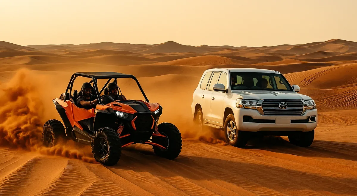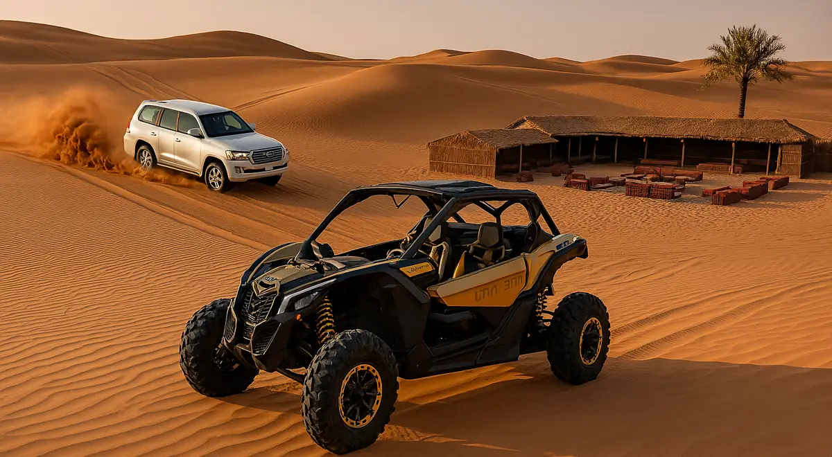 Quad Bike + Desert Safari Combo in Dubai lets you double the adventure. Start with an exciting quad biking ride across golden dunes, then relax with a traditional desert safari featuring camel rides, sandboarding, BBQ, and live entertainment. This combo offers the perfect mix of thrill and culture for an unforgettable desert experience.